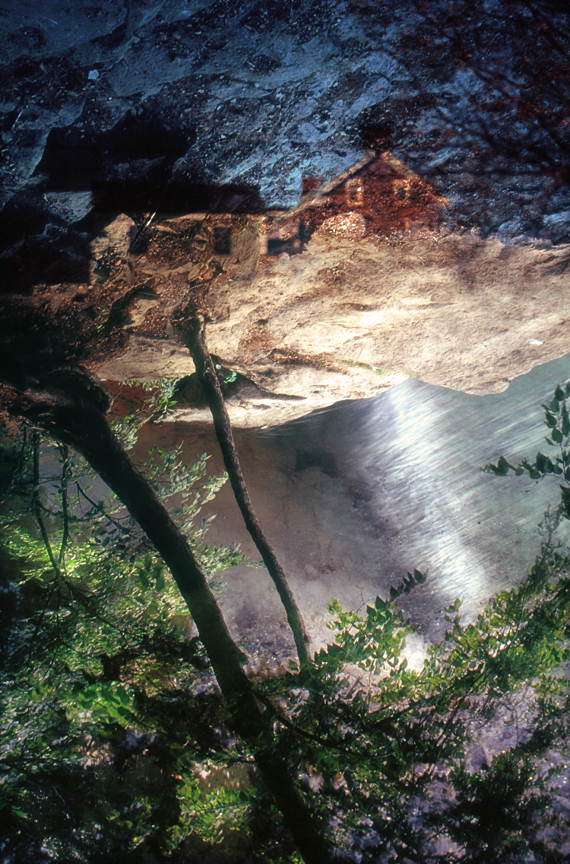 Edison William layers memories and dreams into evocative images of impossible landscapes. While the 29 year old artist Jacksonville-based almost cringes at being categorized as a photographer, William chooses to work solely in film (and in his case the almost-cloistered medium of color slide film) while also pushing the technology to its near breaking point in his approach to color processing, chemical treatments and extreme saturation. William’s work resembles a sort of travelogue for sleepwalkers, blending hallucinatory scenes of nature where clouds dot the earth and trees hang down from the sky, a counter clock realm with humans reduced to a phantom-like phenomenon, while horizons bend like frowns and our perceptions can no longer be trusted. His work has been featured on posters and releases for local indie bands Opiate Eyes and Personal Boy, while William (born Bill McGee) is also a musician and sonic collaborator with members of the aforementioned groups.