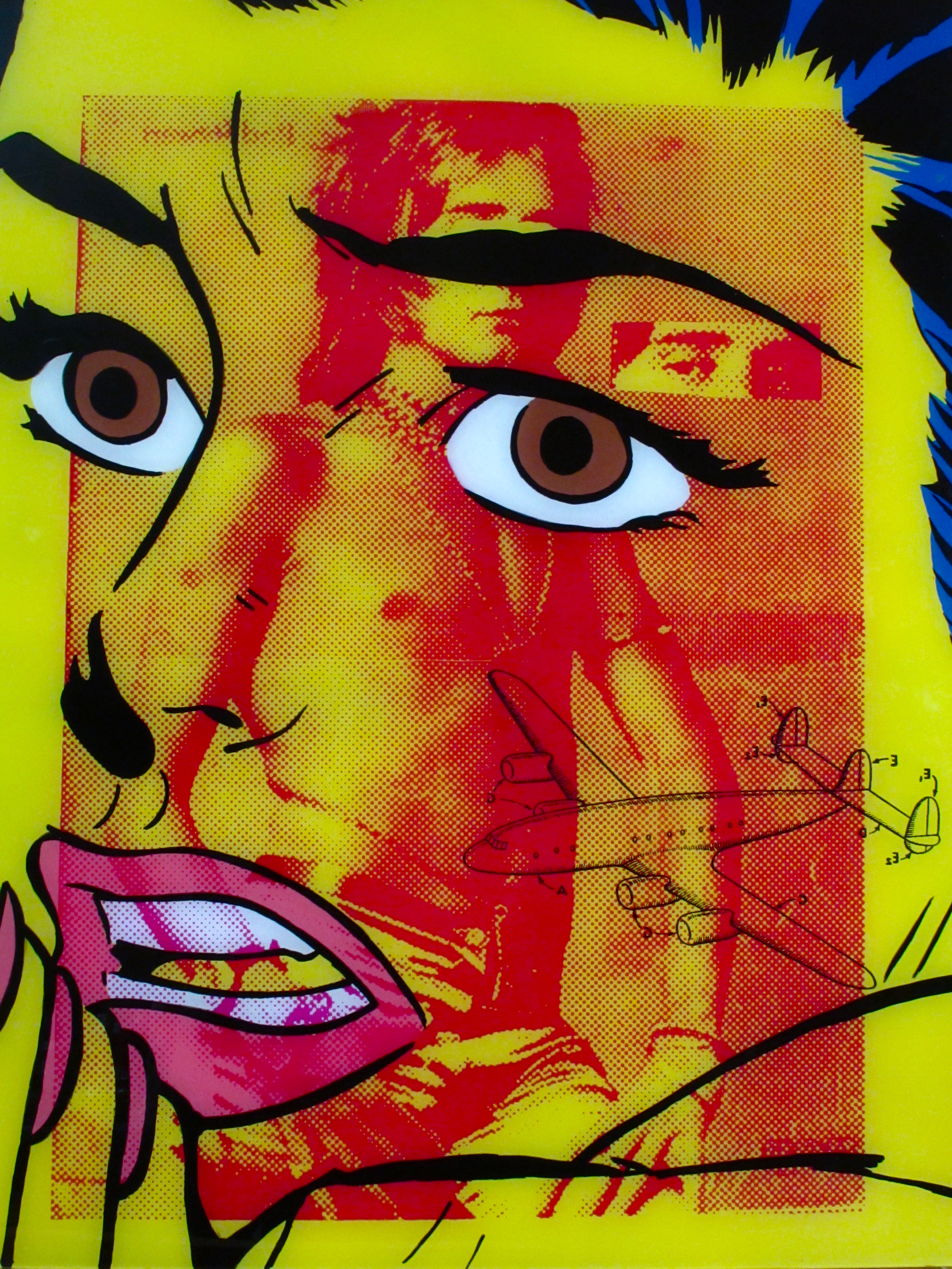 T.R.: Actually, the cars (the Cadillac with bullhorns and Trans Ams) are from contemporary ads for used cars. The cheerleader and several other images are manipulated versions of pretty current stock photos. The nudes are from early 1970s girly magazines and one is from a 1940s book on photographic lighting. The post WWII era saw an explosion of consumerism and marketing. We were promised a great deal. It was possible to buy happiness. It has defined our economy, landscape, lifestyles and our expectations. Later, Warhol changed the art world by referencing that and we are still referencing and re-referencing our past and cashing in on the “classics” and the “good old days”. They say “Fashion is cyclical”. There are plenty of clichés to go around. There is a tendency to see the past as better than it was. As a society, I think there is a vague feeling that our best days may be behind us and we are pining for a past that wasn’t exactly all it was hyped to be. There’s that, and also this stuff just looks so cool together in vibrant colors on shiny plexiglass.